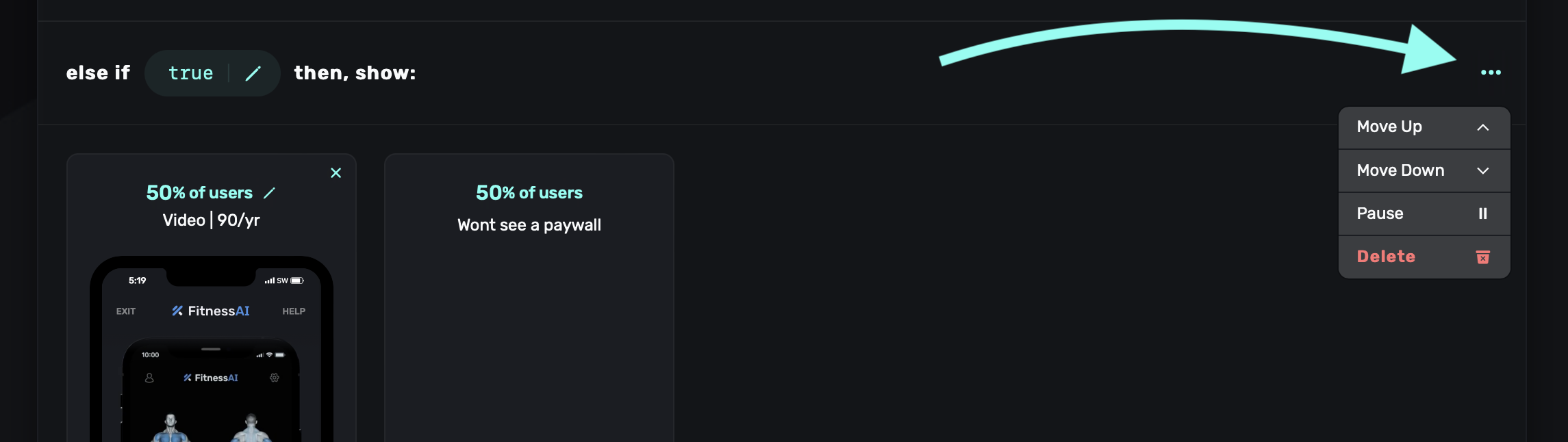 Remember: Changing a paywall's percentage only affects new users. It doesn't affect assignments for users who already saw that paywall.