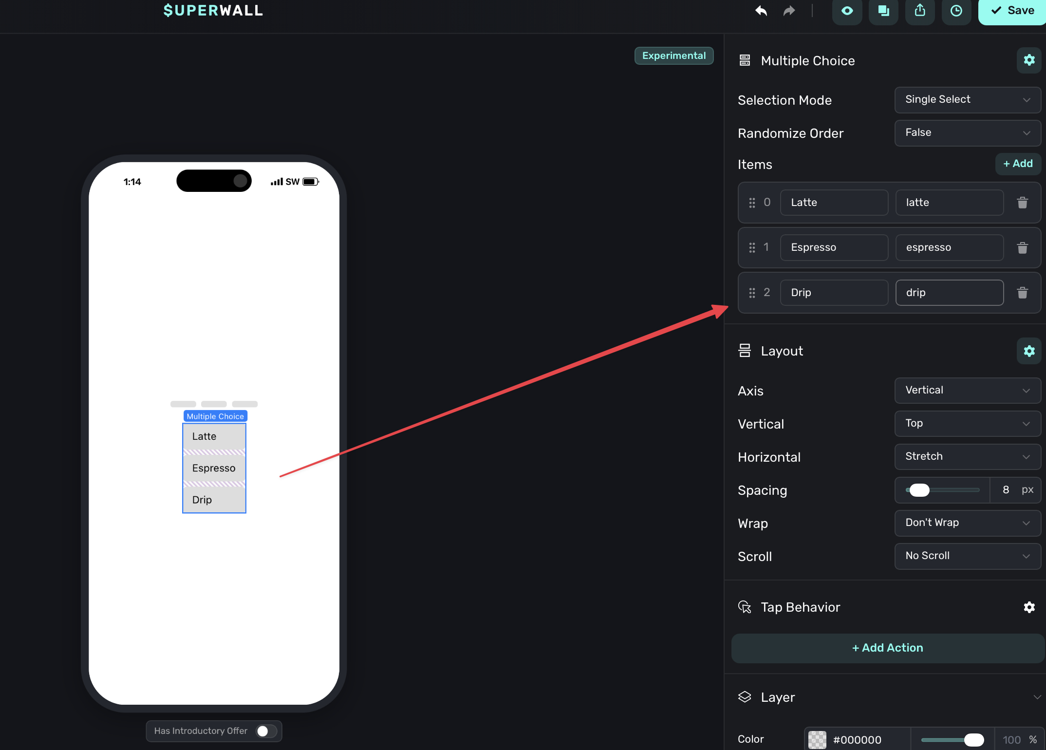 • Single-select or multi-select: Choose whether users can pick one option or multiple.