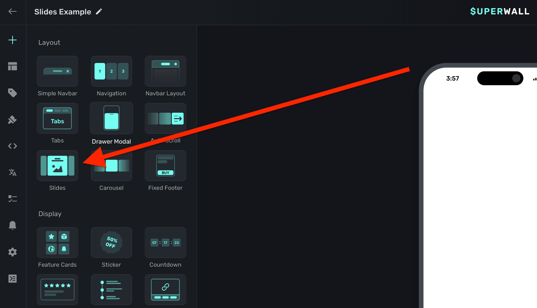 Use Superwall's slides component to create a horizontal or vertical slide UX driven by a user's gesture.