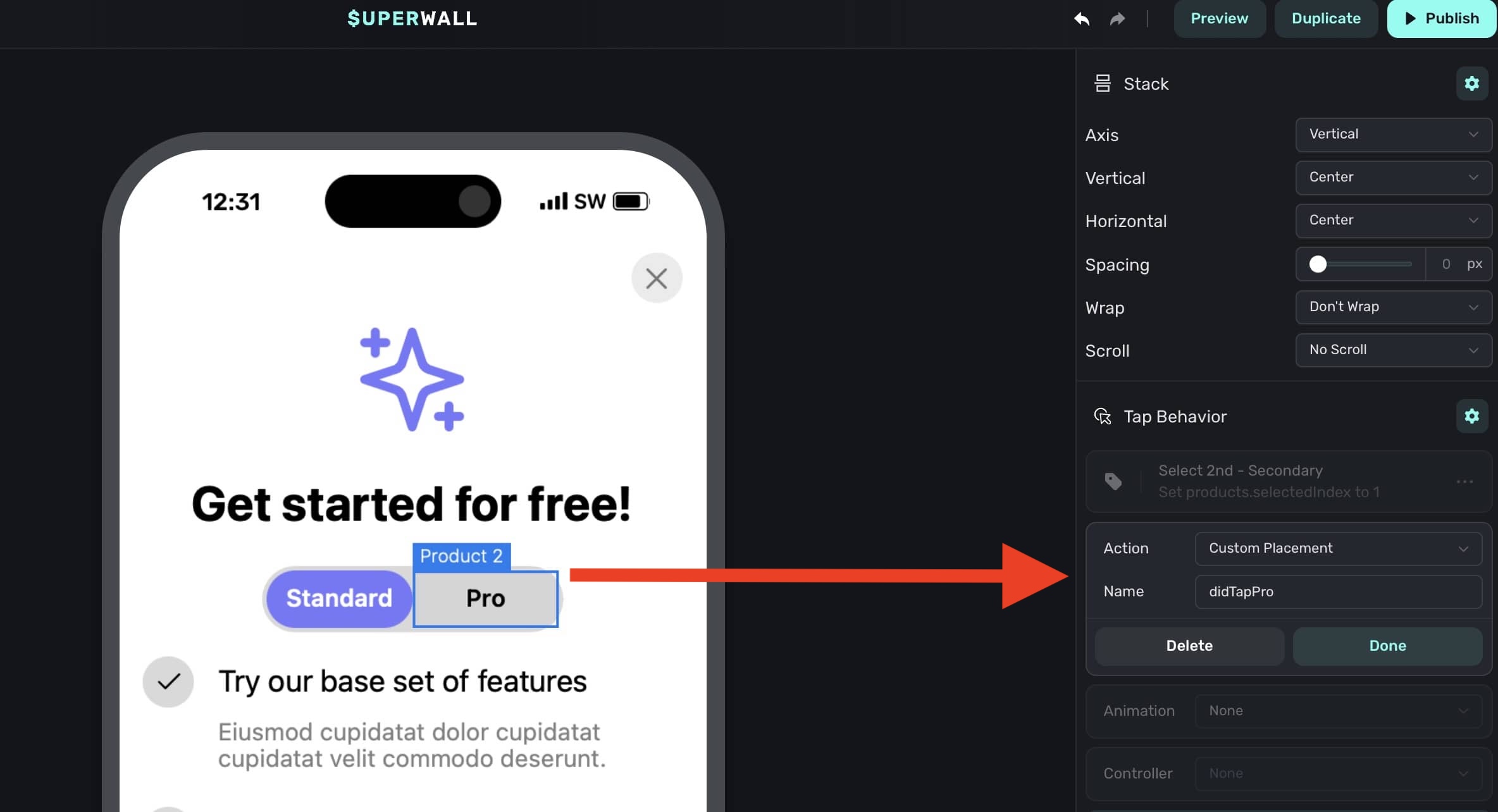 For example, in the paywall below, perhaps you're interested in tracking when people switch the plan from "Standard" and "Pro":